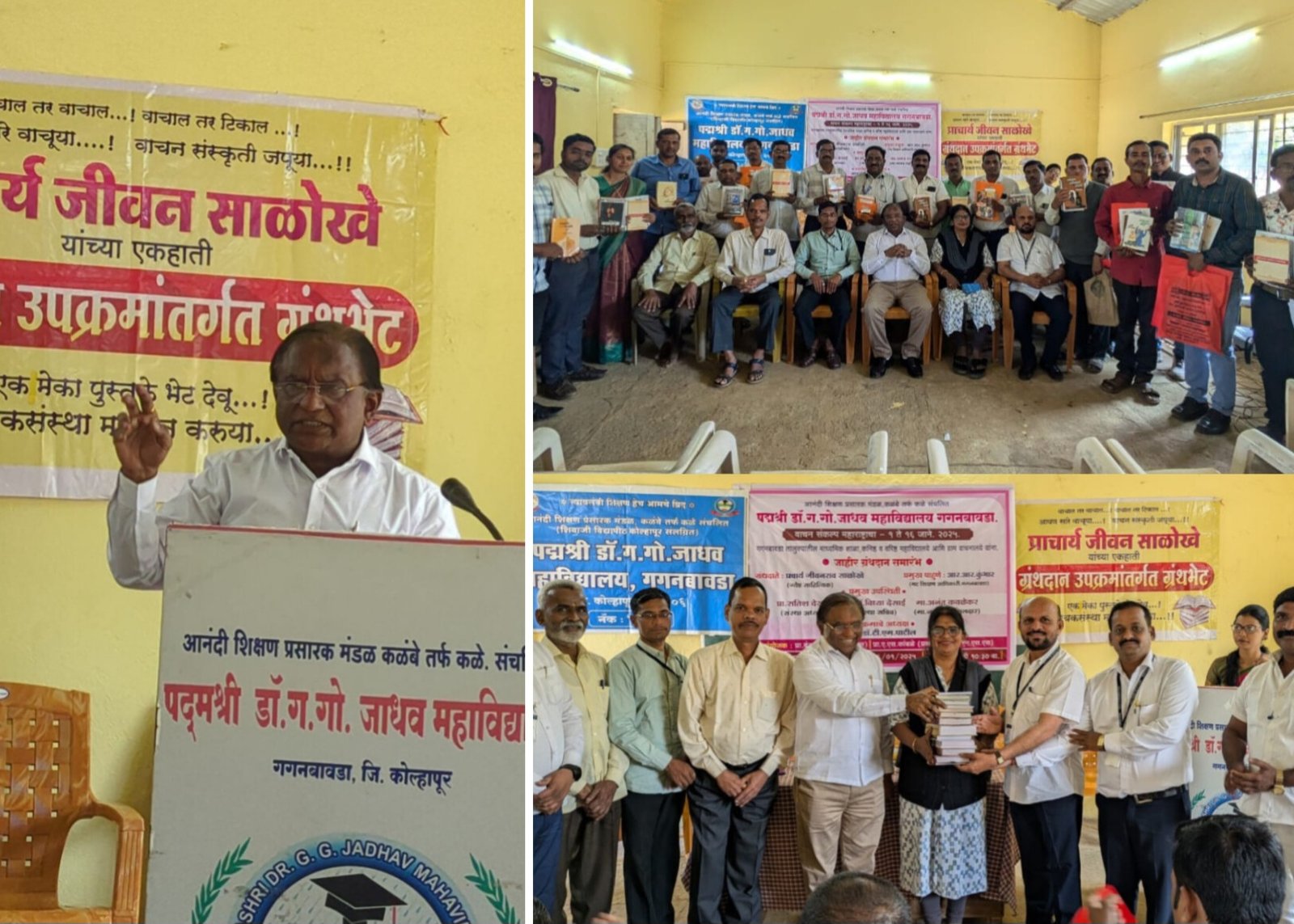 येथील पद्मश्री डॉ. ग. गो. जाधव महाविद्यालयात ‘वाचन संकल्प महाराष्ट्राचा’ या महाराष्ट्र शासन आणि शिवाजी विद्यापीठ, कोल्हापूर यांनी निर्देशित केलेल्या कृतीकार्यक्रमांतर्गत दि. १६ जानेवारी रोजी, “जाहीर ग्रंथदान समारंभ” आयोजित करून या संकल्पाचा कृतीशील समारोप केला. आपल्या ग्रंथदान उपक्रमांतर्गत ज्येष्ठ साहित्यिक प्राचार्य जीवन साळोखे यांच्या दोन दशकाच्या या उपक्रमातून, यावेळी त्यांनी गगनबावडा तालुक्यातील सर्व माध्यमिक शाळा, कनिष्ठ महाविद्यालये, वरिष्ठ महाविद्यालये आणि शासनमान्य वाचनालयांना नियोजनपूर्वक ग्रंथभेट म्हणून प्रथमच अशाप्रकारे ग्रंथदान समारंभ झाला असून,यावेळी पाचशे दर्जेदार पुस्तके संबंधितांना प्रदान केली.